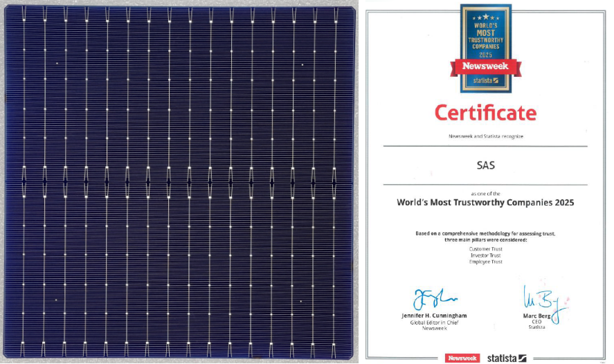 ▲ Sino-American Silicon Products (SAS) has been recognized by the US magazine Newsweek as one of the “World’s Most Trustworthy Companies” in 2025. Photovoltaic modules using SAS’s Taiwan Excellent PV Award-winning cells have demonstrated high performance stability. (Source: ITRI)